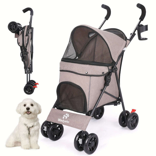 Portable Pet Stroller for Dogs & Cats - Durable Alloy Steel Frame, Linen Fabric, Coffee Brown